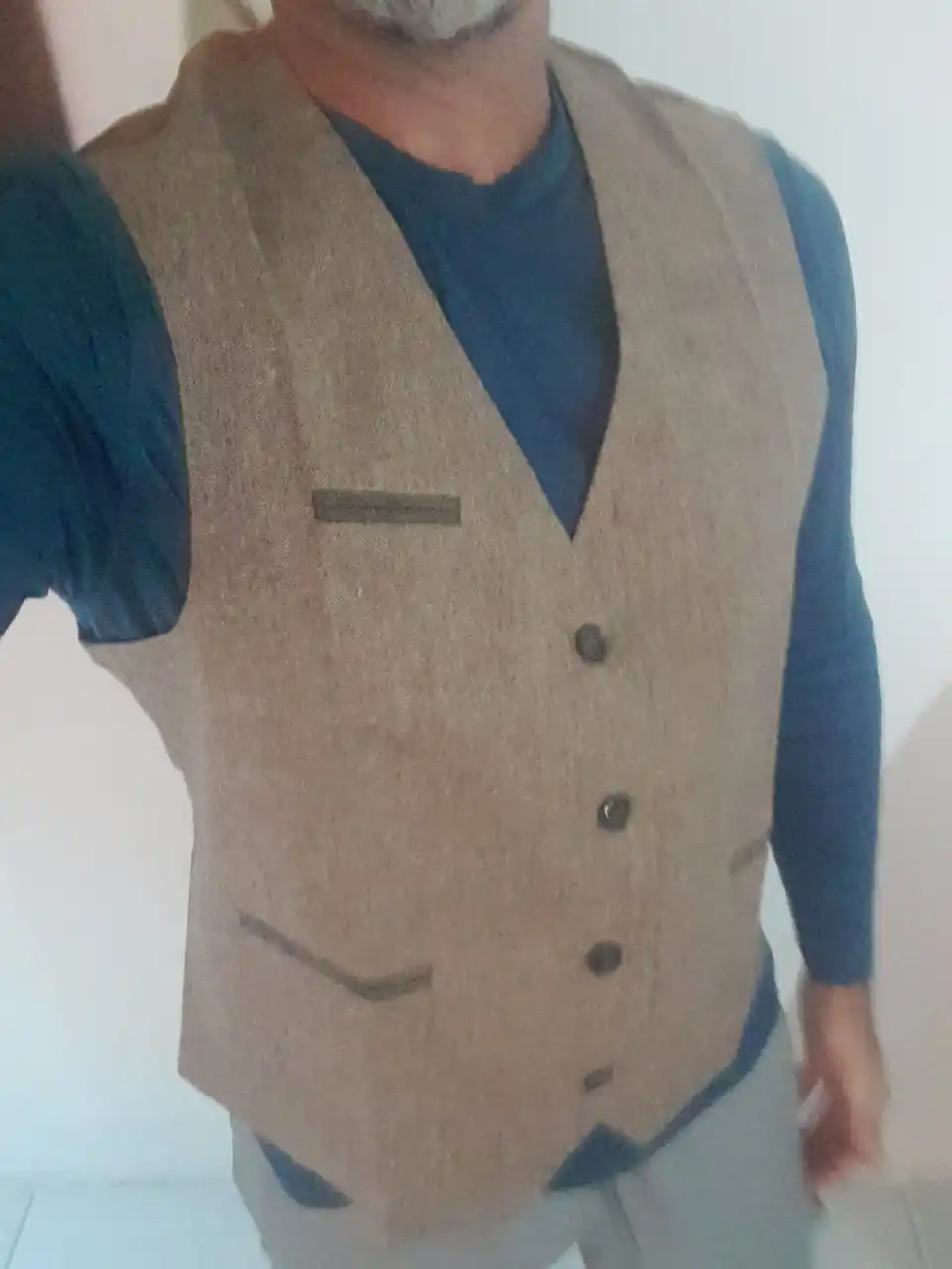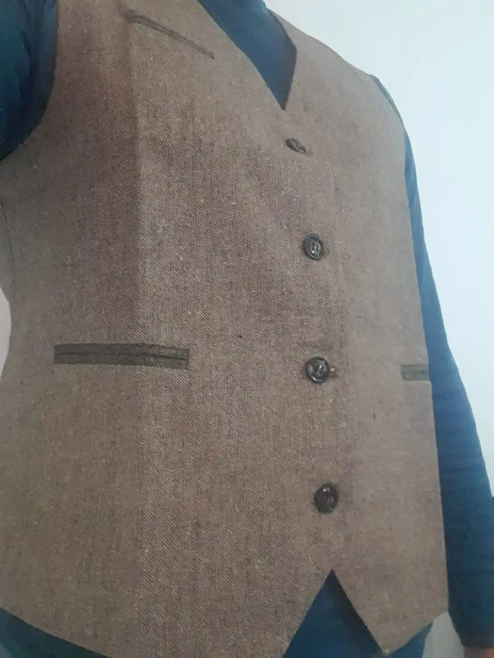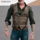 Gilet pour Homme, coupe cintrée, rétro, Costume Patchwork Imitation cuir, coupe simple boutonnage, décontracté