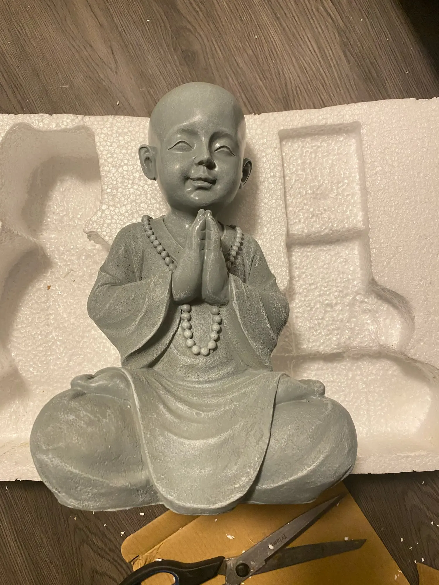 enfant bouddha de bonne taille pour mettre dans le jardin comme à l'interieur conforme à la photo