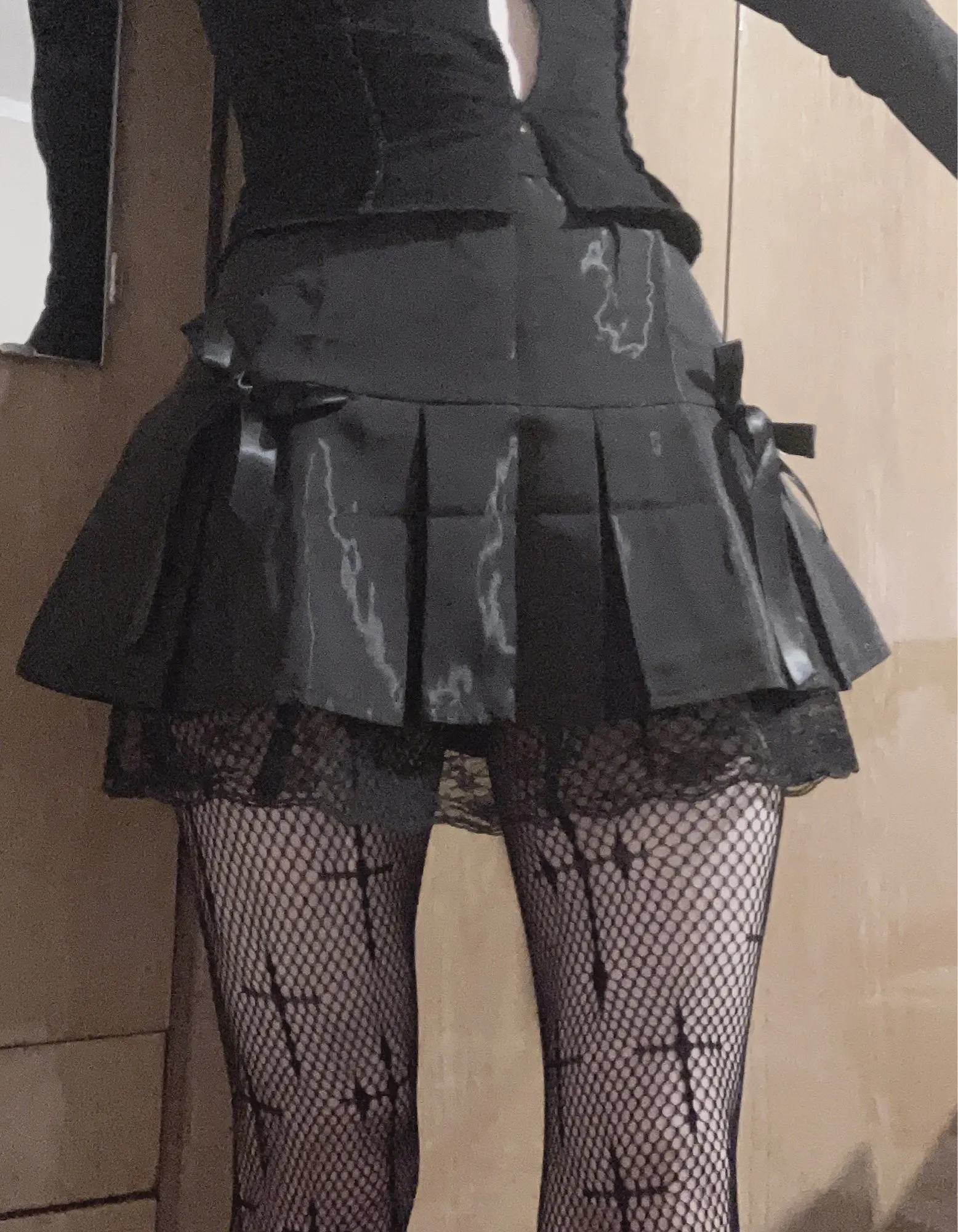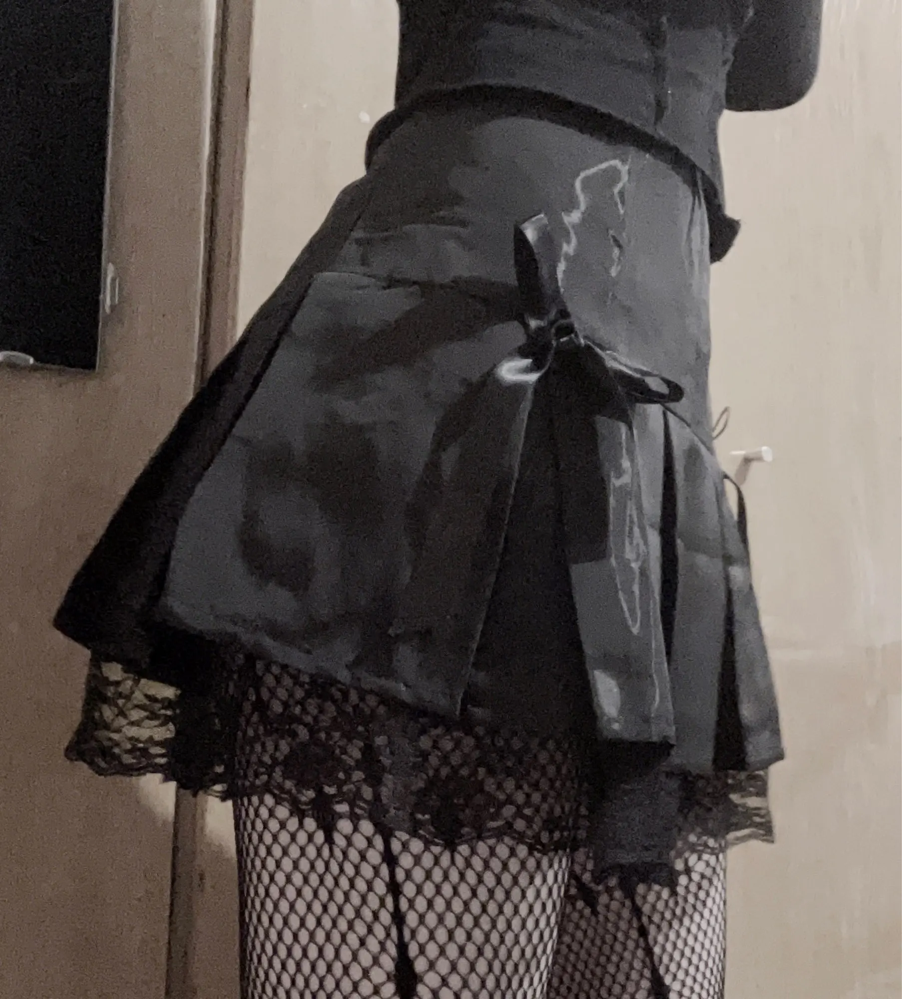 Goth foncé dentelle gothique taille haute plissée Mini jupes Harajuku noir e-fille douce a-ligne Micro jupe Patchwork femmes Sexy fête