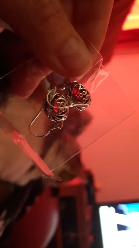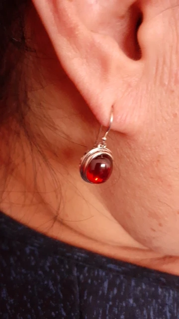 bonjour tres jolie boucle d'oreille apparemment en argent. maintenant voir si la pierre est bien du grenat. mais très élégante