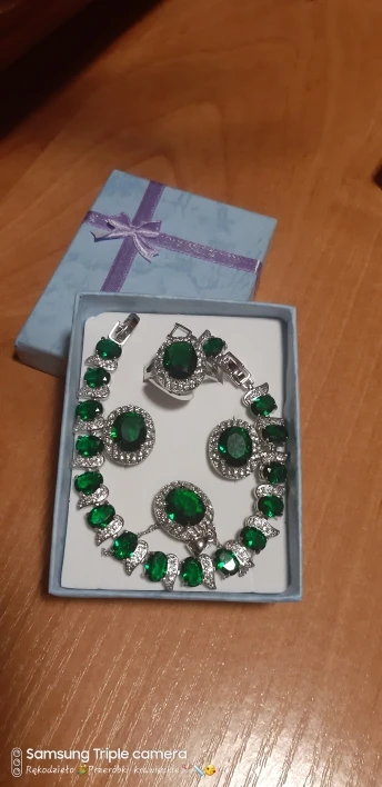 Grand ensemble de bijoux de mariée, couleur argent, de Costume tendance, avec pierre naturelle, Bracelet boucle d'oreille vert avec Clip en CZ, bague pour femmes