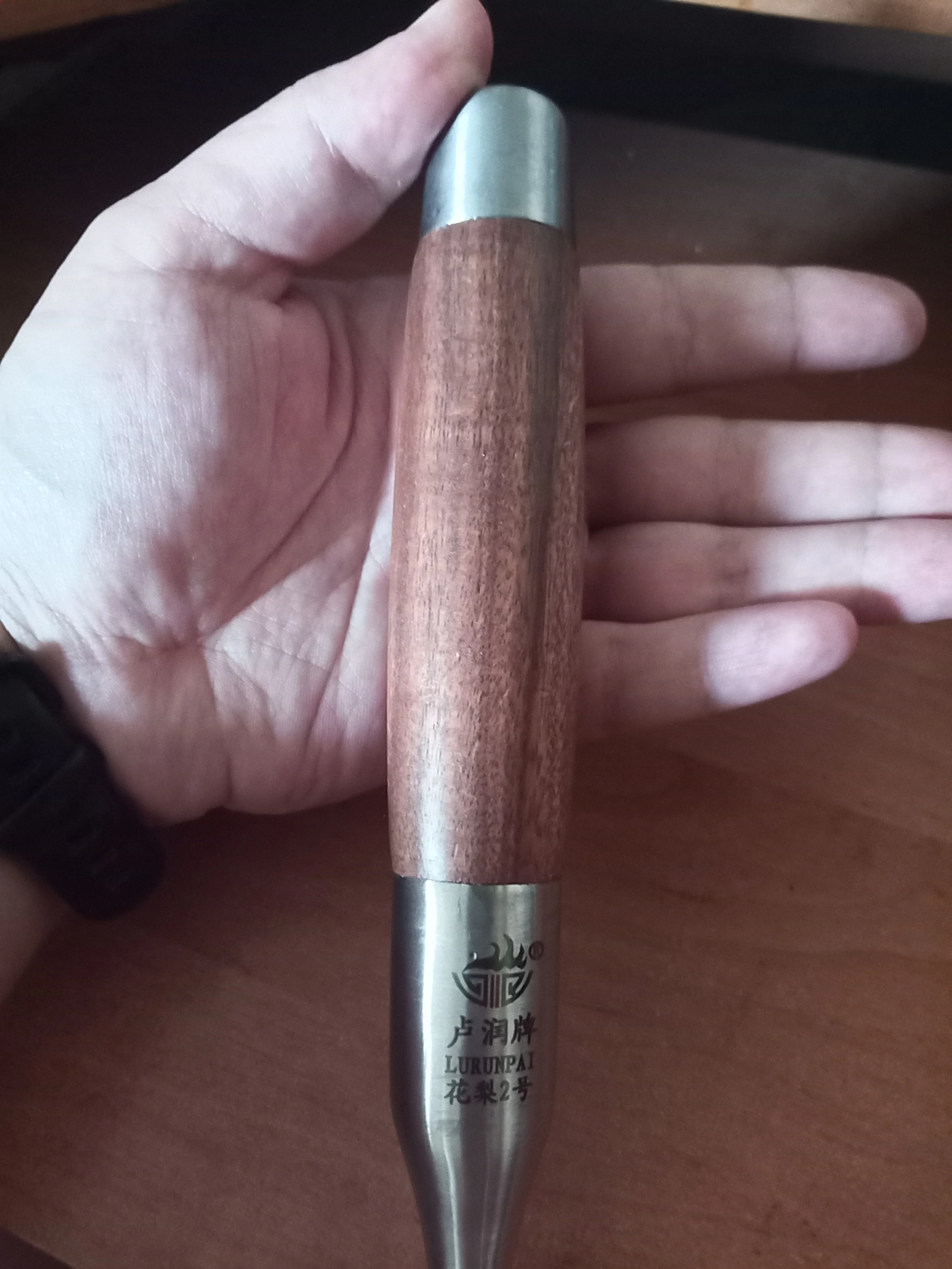 Decent quality. Ok value for money? I'd rather have a flat edge than round but that's just a petty detail. Happy overall. Hole in the metal body of the handle to nail in the woody part is a welcome addition. Qualité acceptable. On en a à peu près pour son argent. J'aurais préféré un bout plat plutôt qu'arrondi mais c'est un détail négligeable. Le petit trou dans la partie métallique pour clouer le manche en bois est une bonne idée.