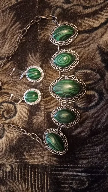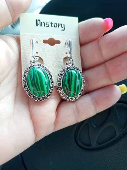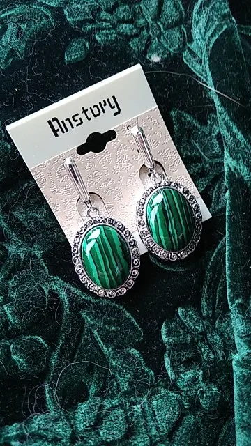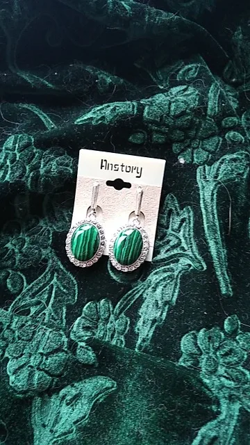 Grand Ovale Fleur Pendentif Malachite Boucles D'oreilles Pour Les Femmes Antique Argent Plaqué Partie De Mode Bijoux TE391
