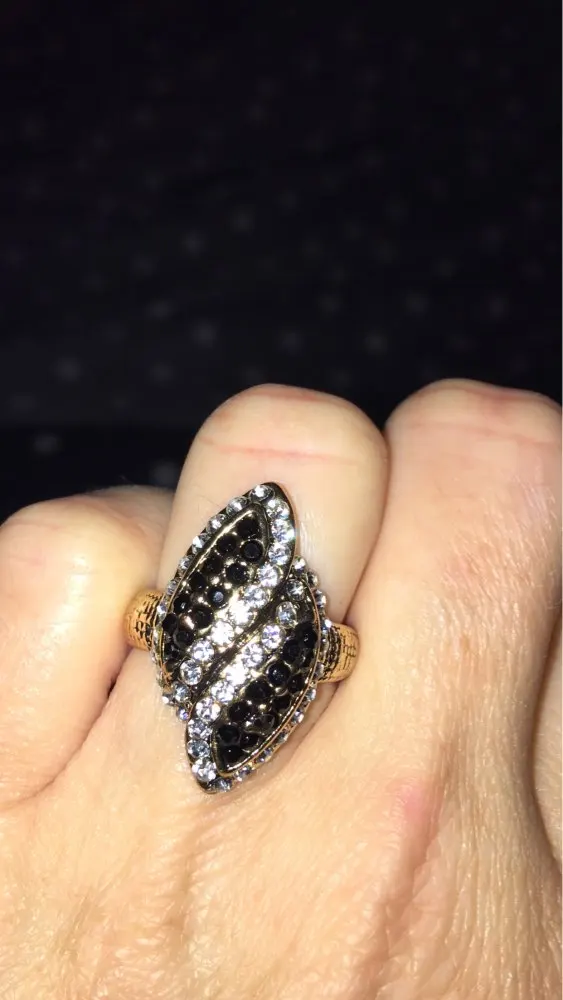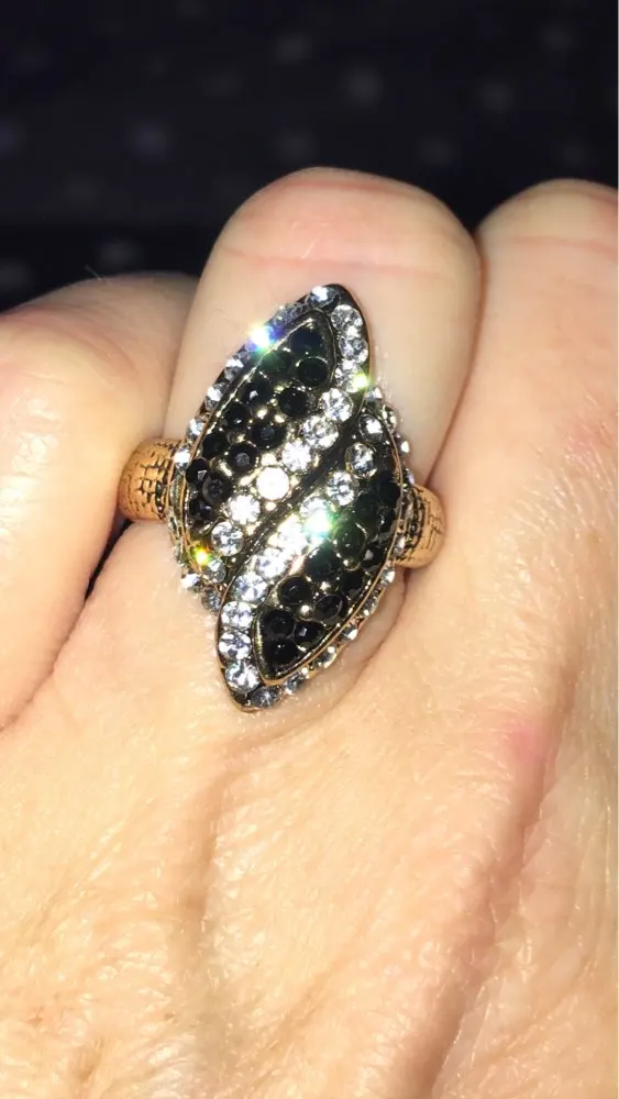Grandes bagues de mariage en cristal noir pour femmes, vente en gros, bague ondulée de couleur or Antique, bijoux de mode, livraison gratuite