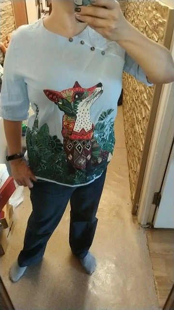 Très sympa mais le motif fait que le tee shirt est plutôt "rigide" et très peu souple.