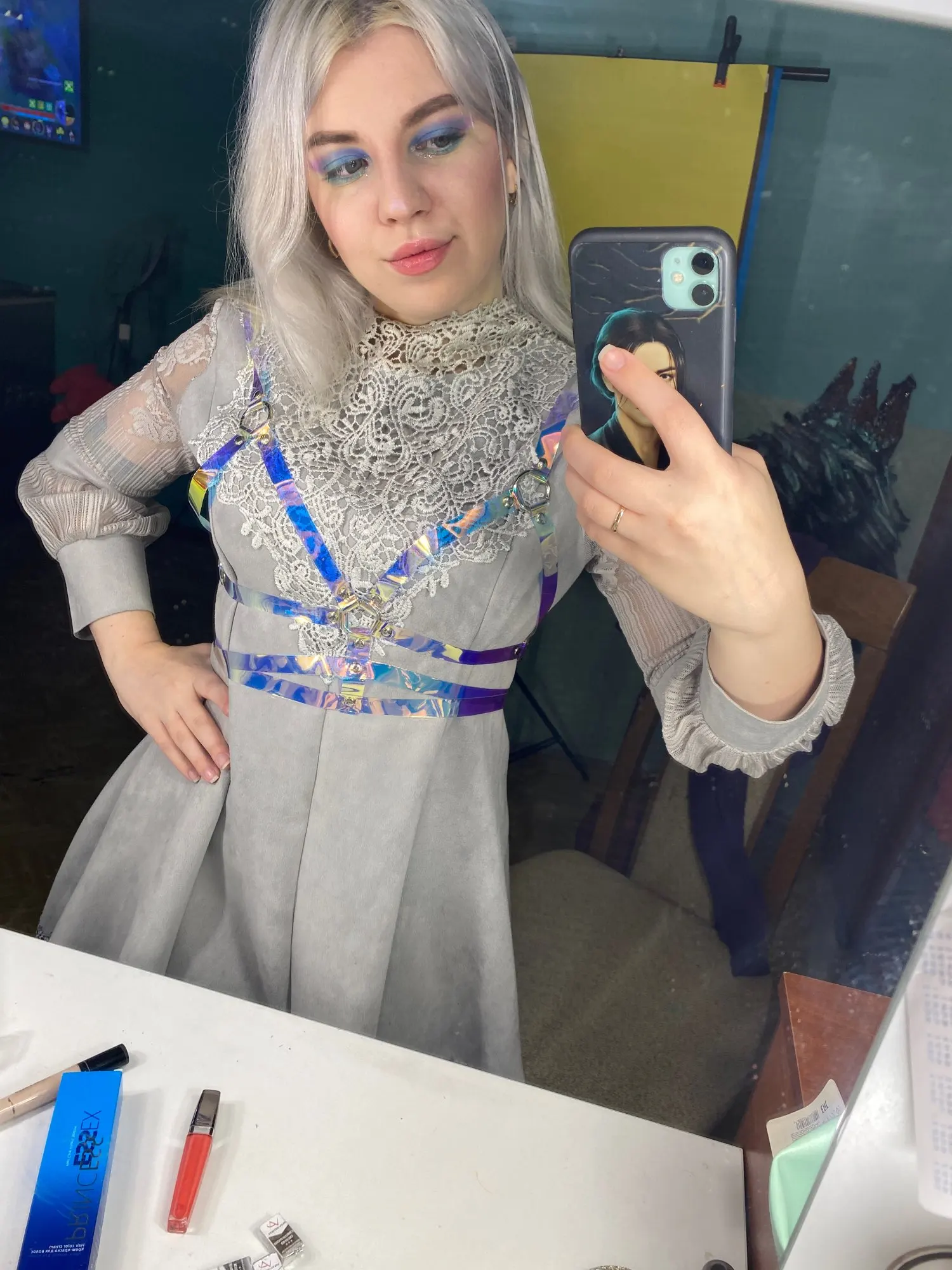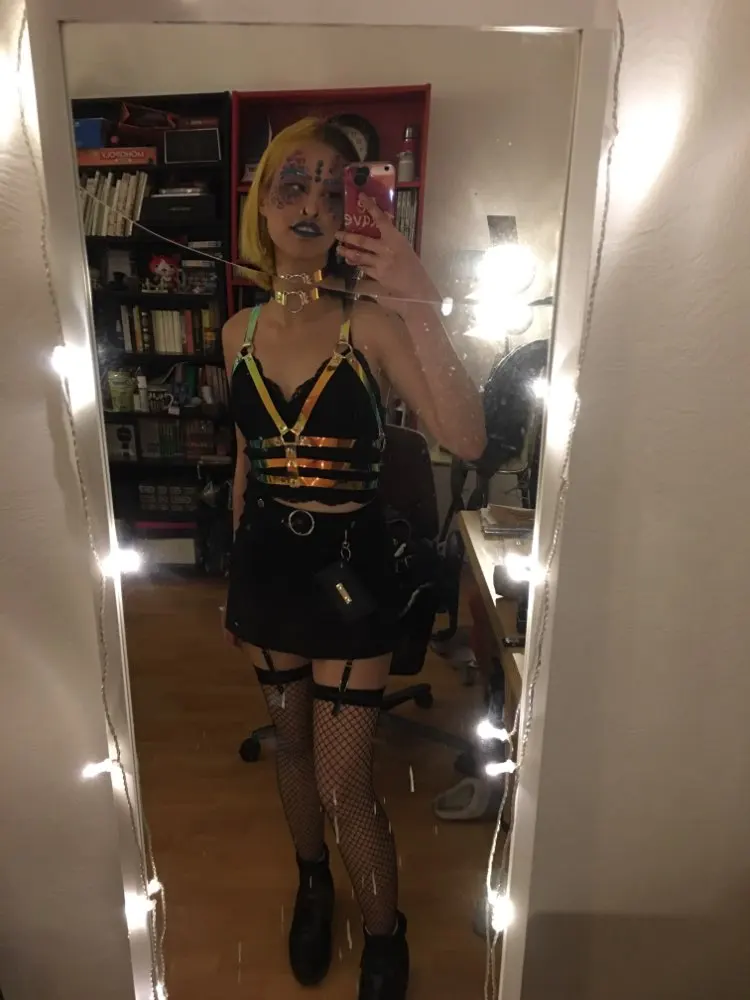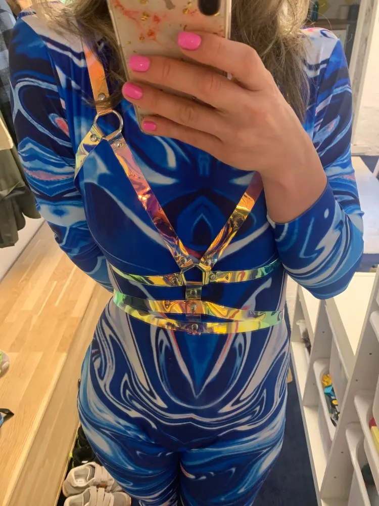Harnais de ceinture, col holographique en PVC, Sexy, Laser ajouré, haut court, haut de gamme, Tops de Festival, Clubwear, débardeur