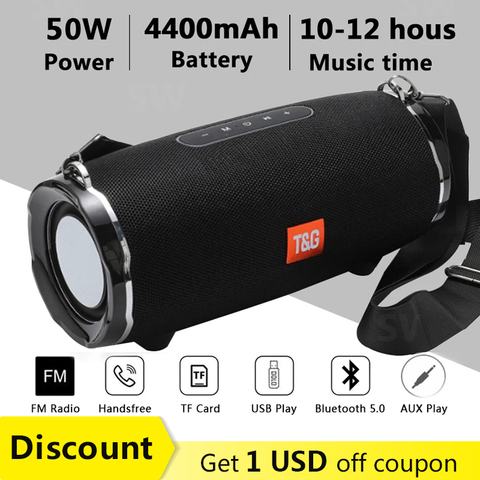 Haut-parleur Bluetooth haute puissance 50W TG187 Colonne portable étanche Super Bass pour PC Haut-parleurs d'ordinateur Caisson de basses stéréo 3D Boom Box Music Center Home Cinéma Barre de son FM TF
