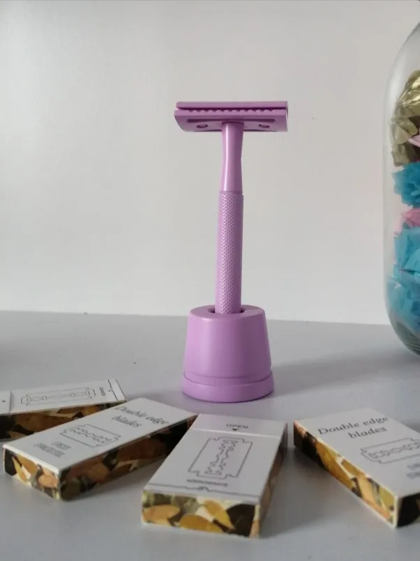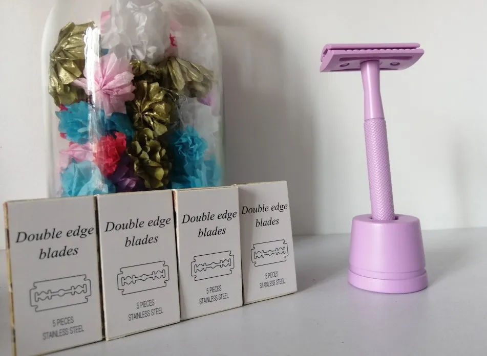 HAWARD – ensemble de rasoir de sécurité écologique, épilateur zéro déchet, 4 couleurs (comprenant 1 rasoir + 1 support/Base de rasoir + 20 lames de rasage)