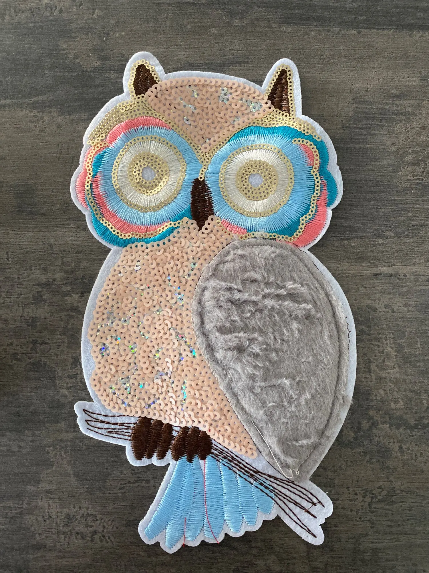 Hibou en peluche patchs pour vêtements autocollants femmes 26cm oiseau paillettes paillettes T-shirt femmes hauts à la mode chemise fille Patch vêtements