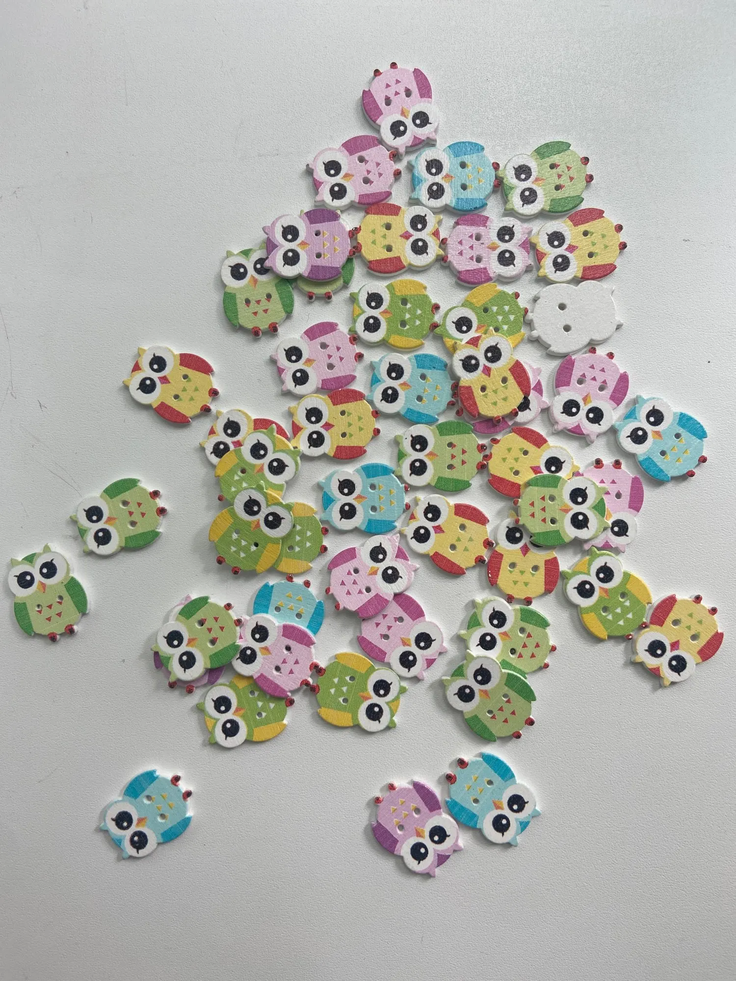 Hibou mixte 2 trous 50 pièces | Boutons de couture en bois avec dessin animé chat animaux, Scrapbooking, 19x25mm