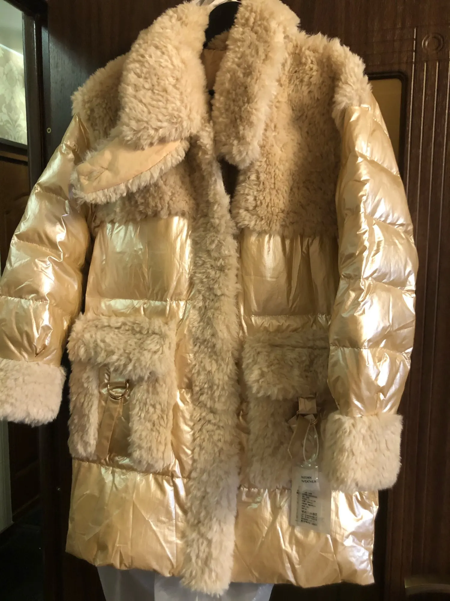 Hiver femmes vers le bas couture fourrure veste femme chaud Parka Champagne or brillant blanc canard vers le bas manteaux dames coréen manteau vestes
