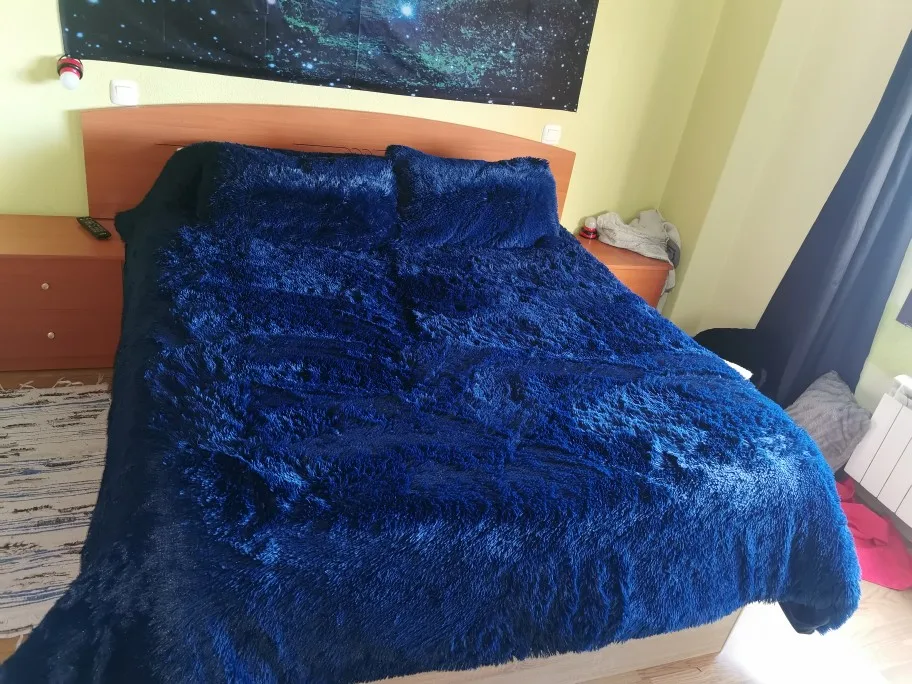 Hiver Super chaud longue peluche ensemble de literie moelleux fausse fourrure Shaggy housse de couette pompons volants jupe de lit ensemble de taies d'oreiller