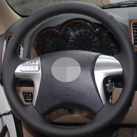 HKOADE – housse de volant de voiture en Faux cuir, cousu à la main, noir, souple et antidérapant, pour Toyota Fortuner Hilux 2012 – 2015