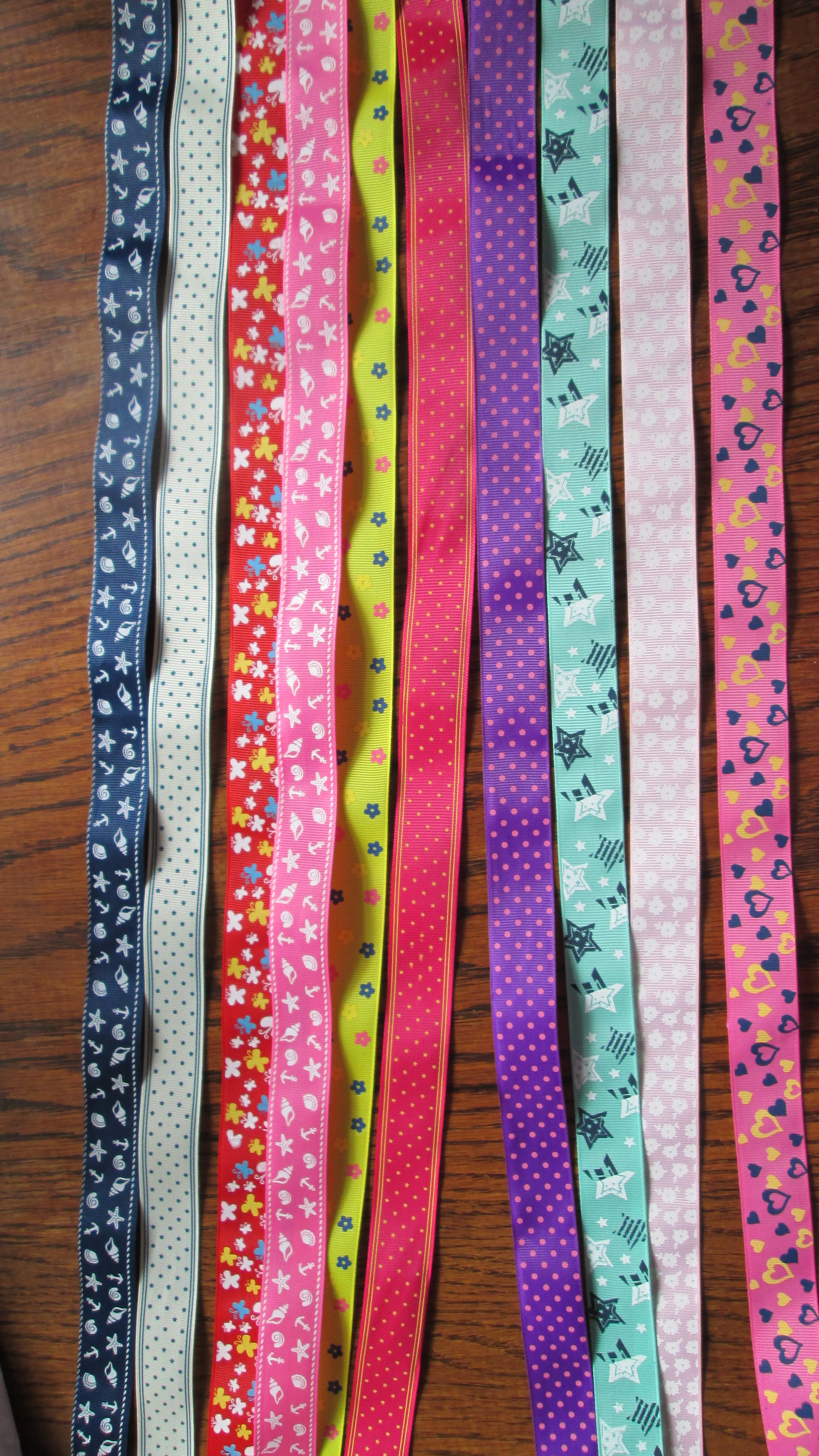 10 rubans complètement différents les uns des autres de très bonne qualité qui ne risque pas de s'effilocher. Expédition rapide en 15 jours je recommande se vendeur