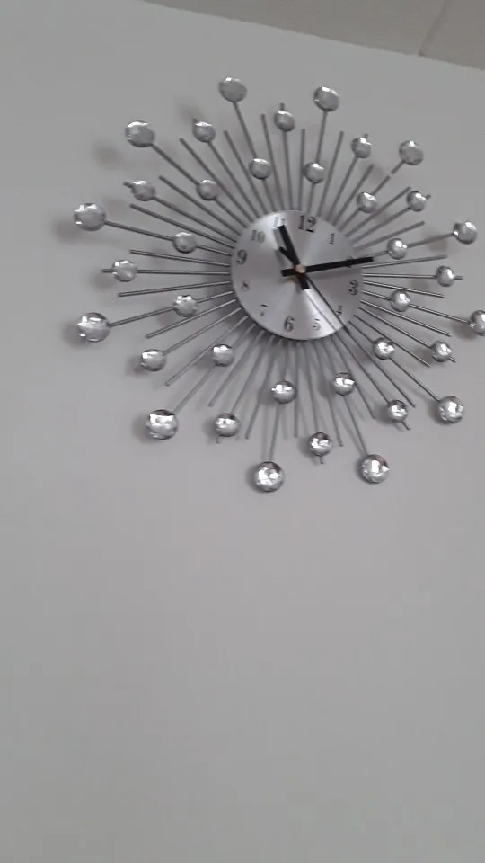 Horloge murale de luxe en métal avec strass, décoration moderne, style argent