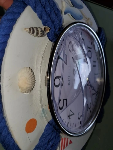 Horloge murale suspendue en forme d'anneau de vie sur le thème de la mer et de la plage, décoration faite à la main pour bateau, océan méditerranéen, WJ721