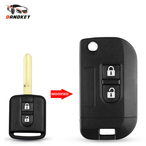 Housse de clé de voiture à distance pliable non coupée Dandkey pour Nissan Micra K12 Note Navara Qashqai 2 boutons