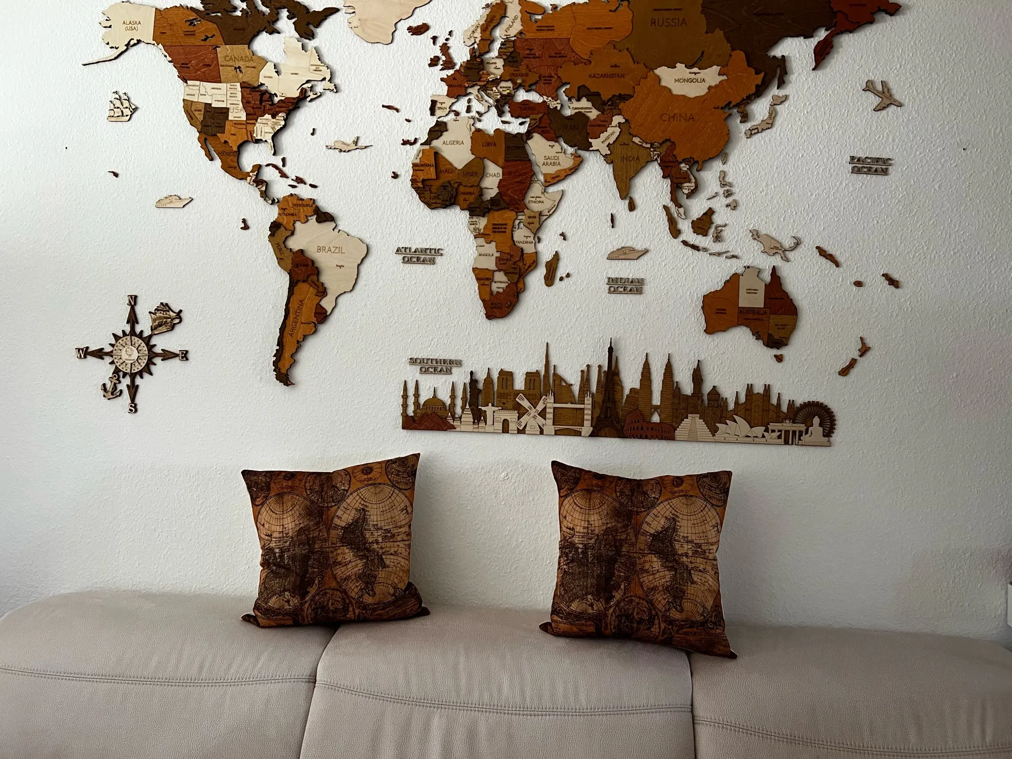 Housse de coussin carrée Vintage avec carte imprimée, housse de coussin, Beige, taie d'oreiller en lin x 45cm, pour canapé, pour voiture, taie d'oreiller décoration de maison