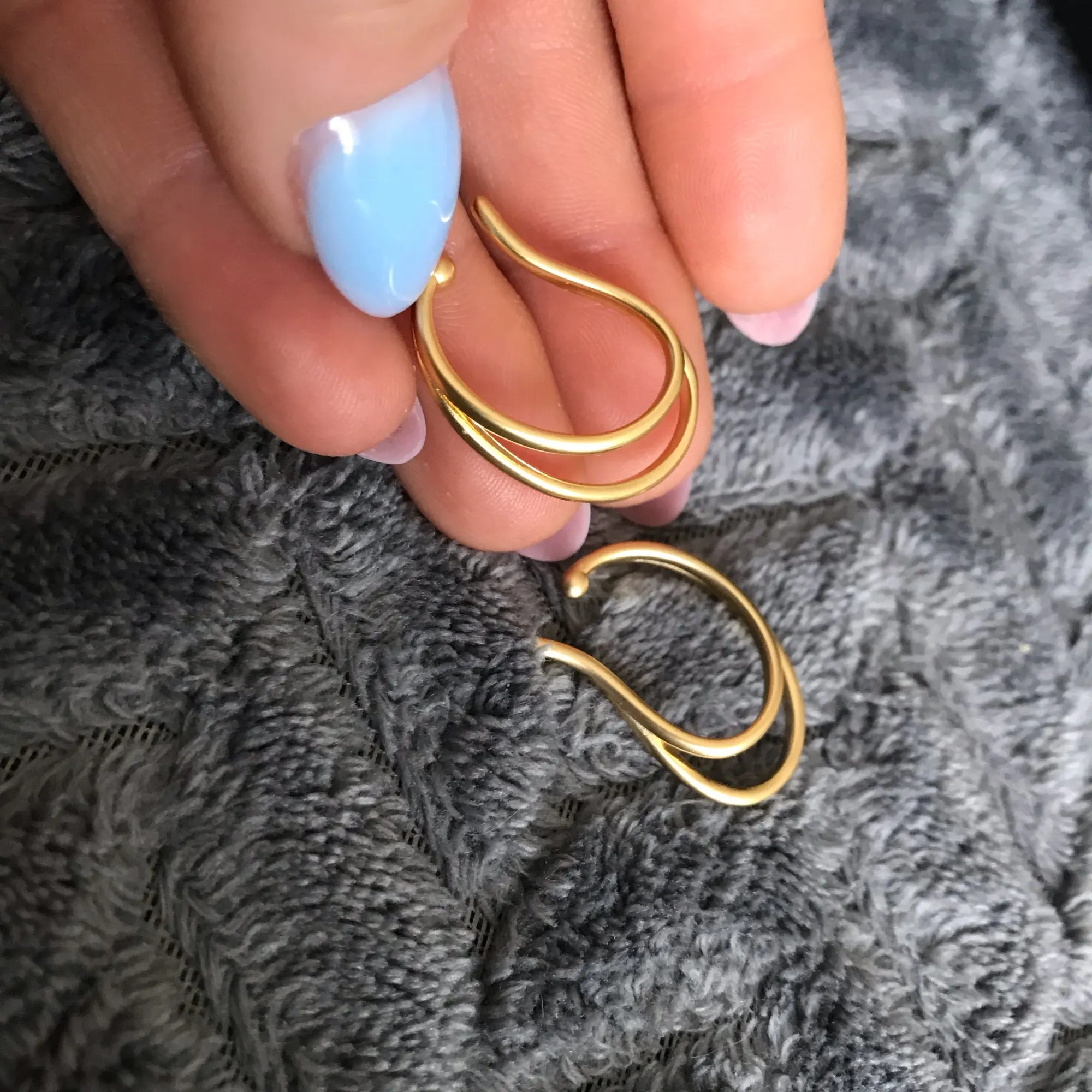 Commandées le 07/11 arrivée le 20/11, soit une livraison plutôt rapide. Elles sont élégantes et ont l’air de bonne qualité. Cependant elles sont très solides donc peu malléables et elles ne s’adaptent pas très bien à mes oreilles, je ne sais pas si je les porterai. À noter qu’il y a deux boucles mais elles sont identiques (pas spécifiques de l’oreille gauche ou droite, le rendu peu être bizarre si vous souhaitez mettre les deux)