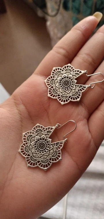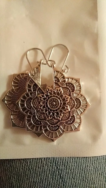 HuaTang-boucles d'oreilles Vintage à fleurs de Mandala pour femmes, Antique, à motif géométrique, couleur argent, goutte, bijoux indiens
