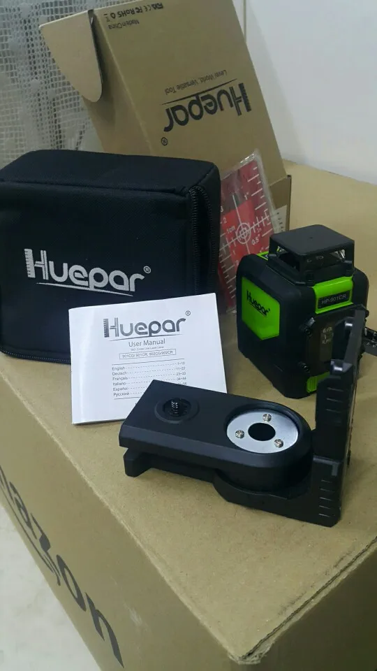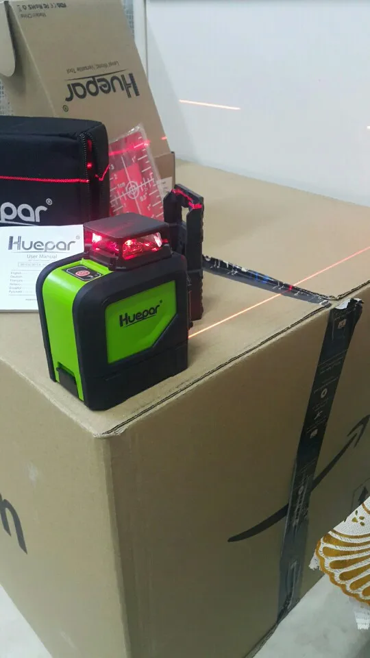 Huepar 5 Lignes 3D Ligne Croisée Niveau Laser Faisceau Rouge Lasers Horizontaux Verticaux 360 Outil de Nivellement Professionnel Auto-Nivelant Rotatif