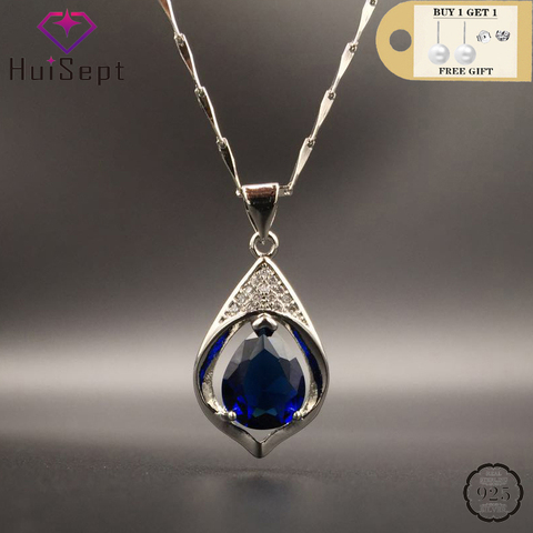 HuiSept 925 argent bijoux collier goutte d'eau forme saphir Zircon pierre gemme pendentif pour les femmes mariage fiançailles accessoires