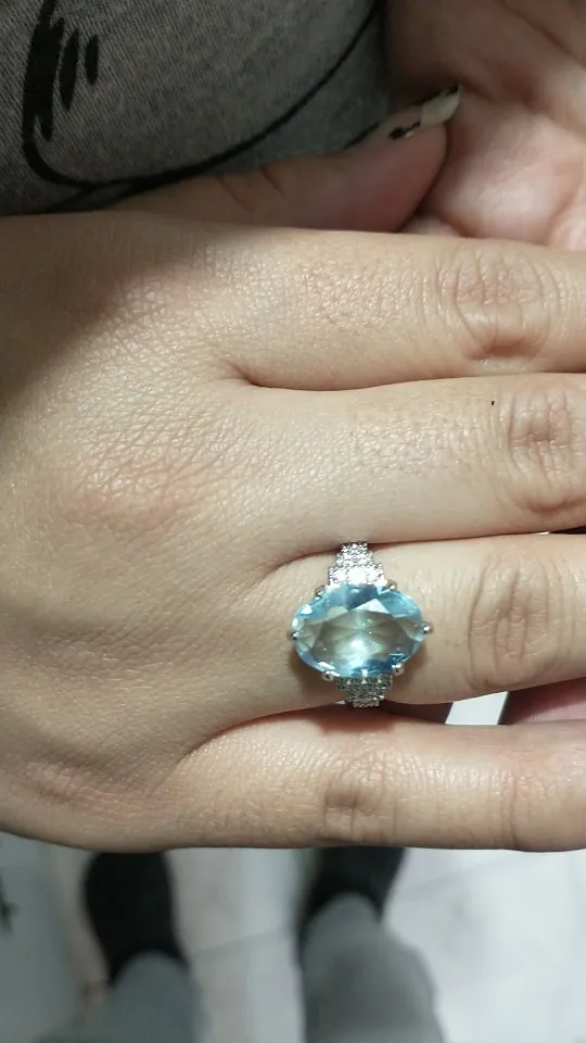 Huitan femme lumière bleu ciel bague de mariage Solitaire bande ovale pierre engager parti femmes bijoux de luxe briller CZ pierre meilleur cadeau