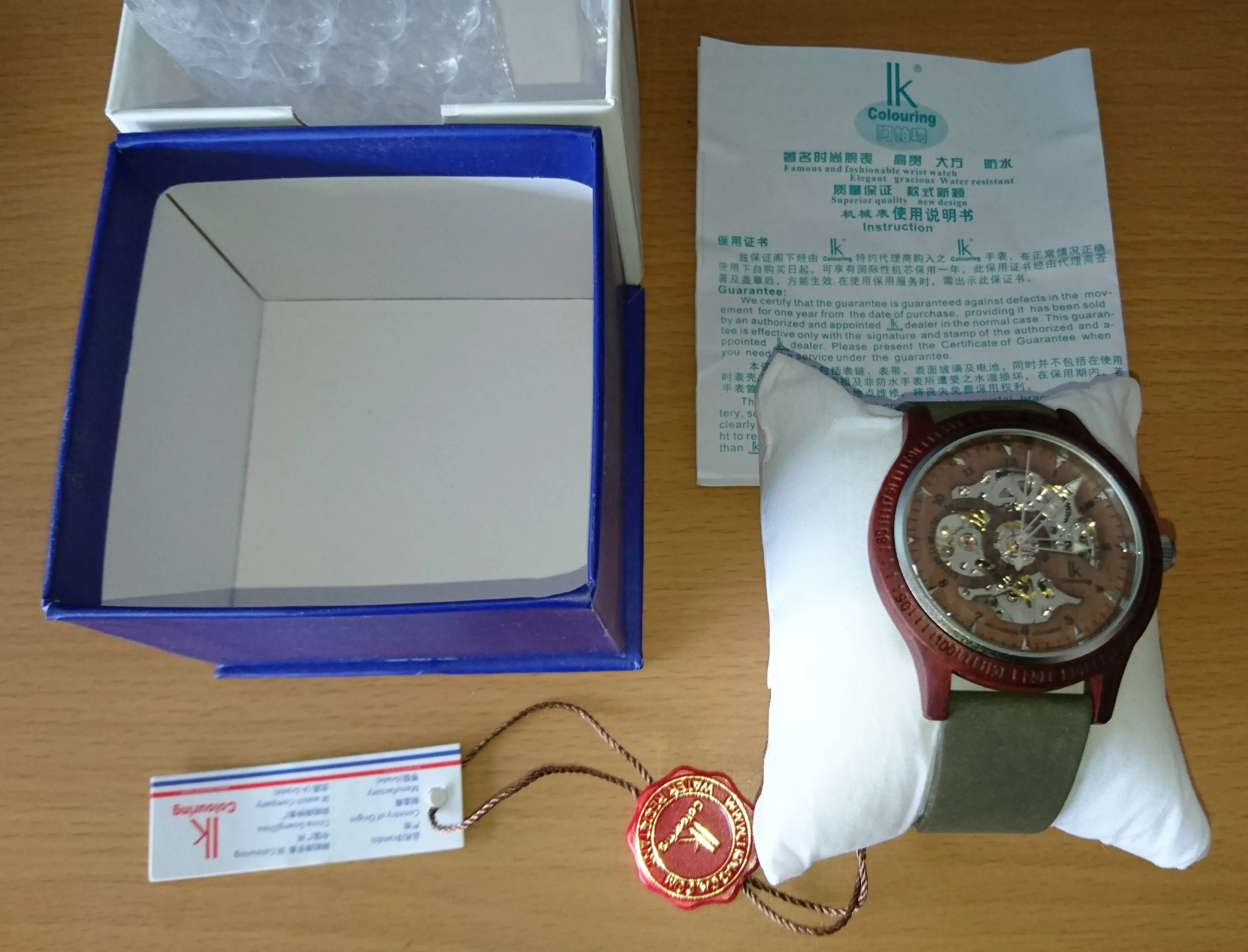 IK colouring 2022 hommes montre mode bois boîtier en cuir véritable Bracelet automatique mécanique squelette Steampunk montre-Bracelet en bois