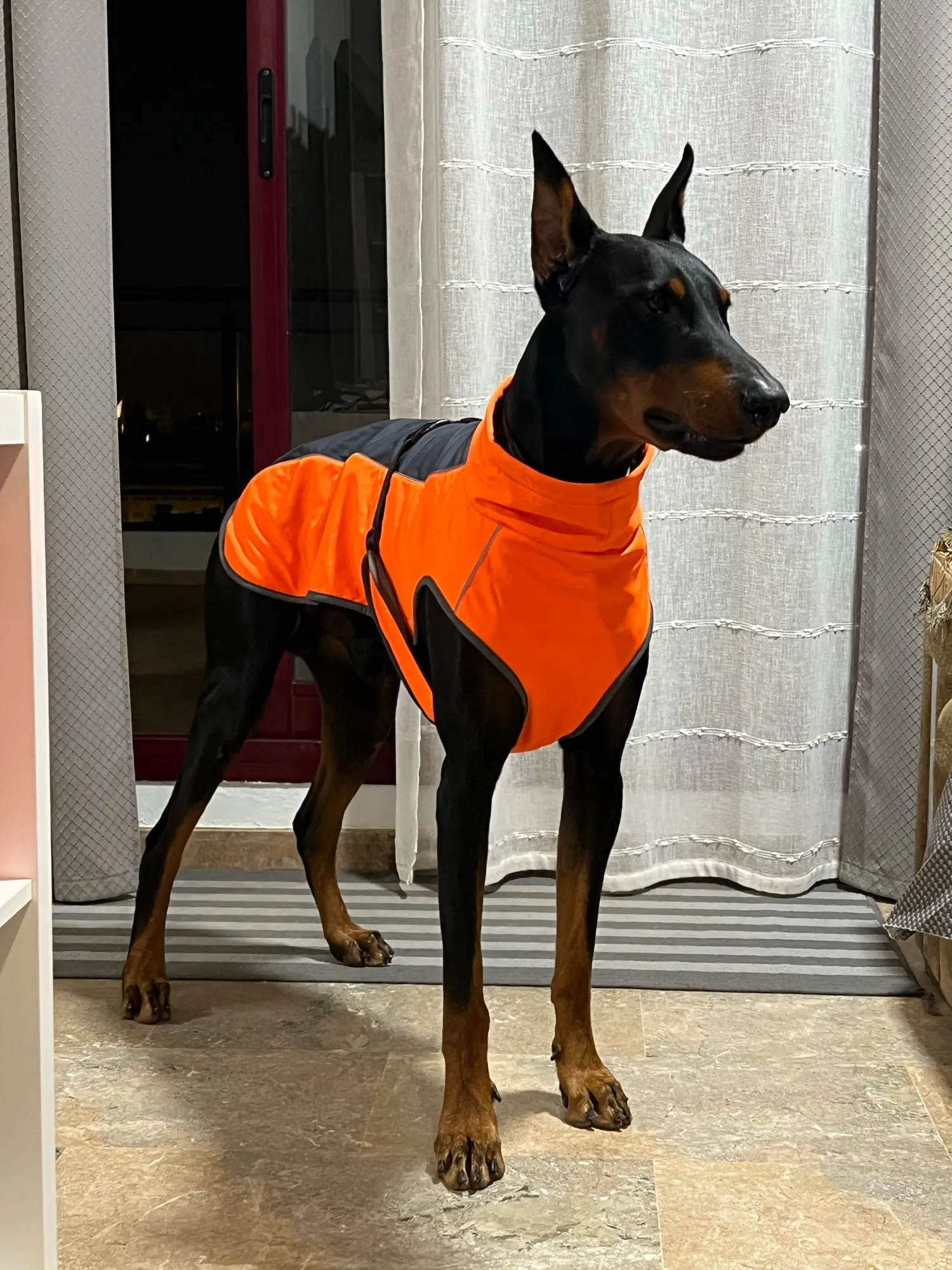 C'est parfait, peut être un tout petit peu juste pour mon chien (berger groenendal) mais le produit m'a séduit et il n'y avait pas la taille au dessus. En xxl, je suis au maximum des ajustements, mais mon chien s'en trouve très bien. Le tissus déperlant protège de l'humidité et l'intérieur du manteau est chaud et douillet. De plus la forme du manteau est parfaite pour s'adapter à la morphologie du chien et il n'y a aucun risque pour qu'elle glisse ou se détache Je suis très satisfait, de plus la livraison a été très rapide Bravo
