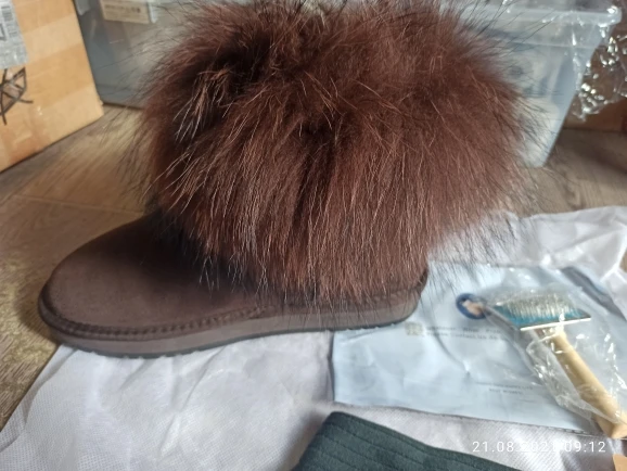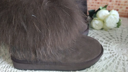 INOE – bottines courtes en cuir suédé pour femme, chaussures de neige chaudes, noires et brunes, à la mode, en fourrure de renard, à la cheville