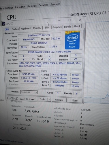 Intel Xeon E3-1271 v3 E3 1271 v3 E3 1271v3 3.6 GHz, Quad Core 8 fils, processeur d'unité centrale L2 = 1M L3 = 8M, 80W, LGA 1150