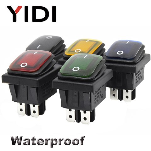 Interrupteur à bascule étanche 16a, 250V ac KCD4-201, 12/220V, 4 broches, on/off, pour l'éclairage lumineux, rouge/vert/bleu/jaune, DPST
