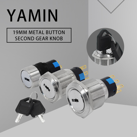 Interrupteur à bouton poussoir en métal, 16/19/22mm, 2/3 Positions, boutons rotatifs en acier inoxydable, 3/6 broches, connecteur au pied, prise