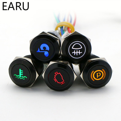 Interrupteur interrupteur d'alimentation en métal noir d'oxyde, lumière LED/Logo bricolage mm, bouton poussoir, personnalisation de Signal avec icône, symbole, 16/19/22mm, étanche