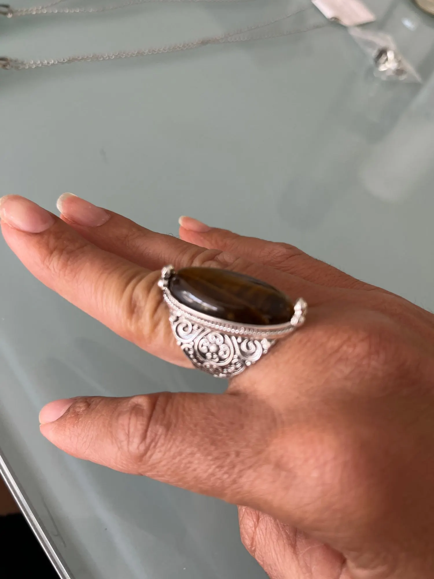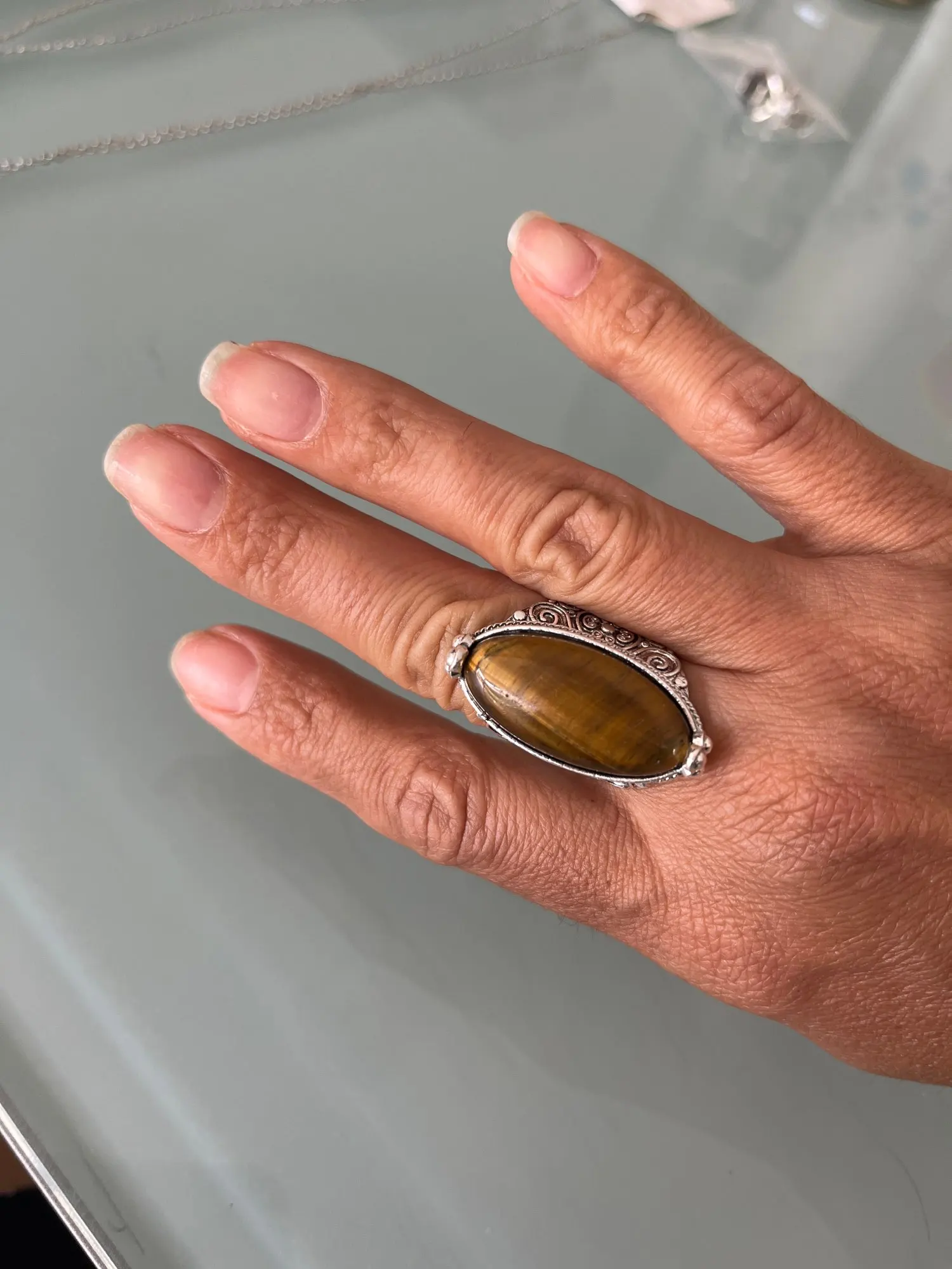 Pas si belle que sur le photo l'alliage de la bague est mal fini je suis déçue, j'ai commandé deux bagues de la même taille et celle ci ne me va pas alors que l'autre oui