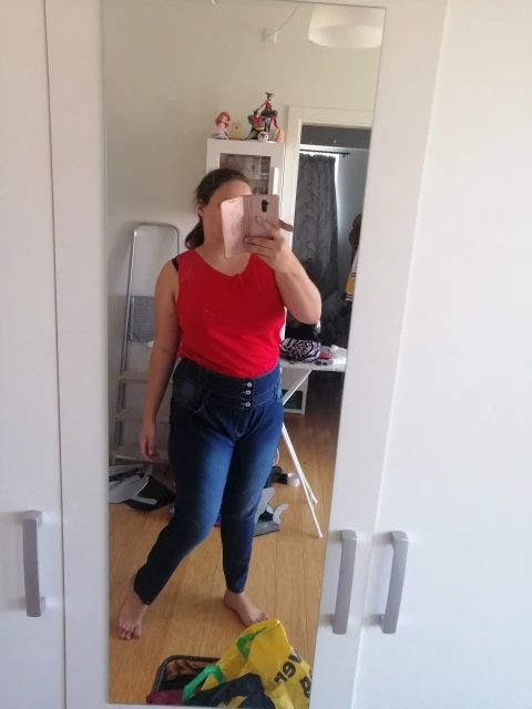 très bien pour 1,66m et 72 kg, belle couleur, belle forme. Il est vrai que ce n est pas du jeans mais un tissu fin qui imite visuellement parfaitement le jeans. parfait pour le printemps