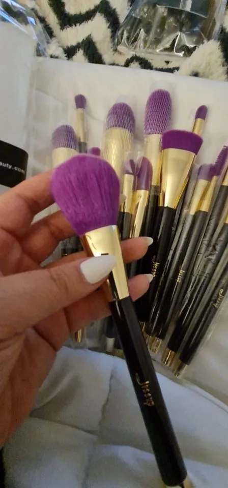 Jessup pinceaux 15 pièces ensemble de pinceaux de maquillage pinceau poudre fond de teint fard à paupières Eyeliner Contour des lèvres correcteur bleu/vert foncé