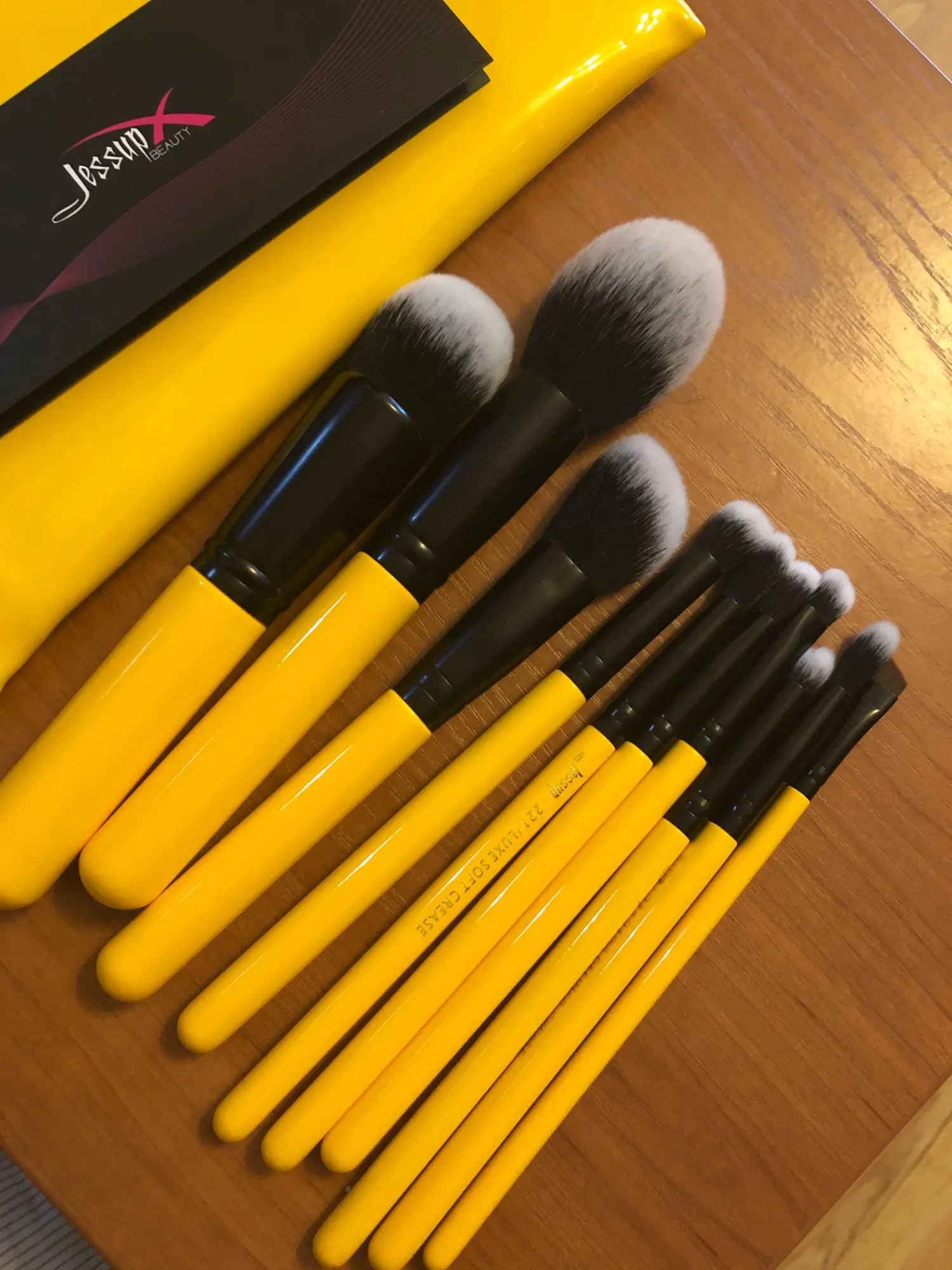 Jessup pinceaux couleur agrumes 10 pièces/ensemble Contour maquillage brosse cheveux synthétiques poudre fond de teint Blush fard à paupières mélange