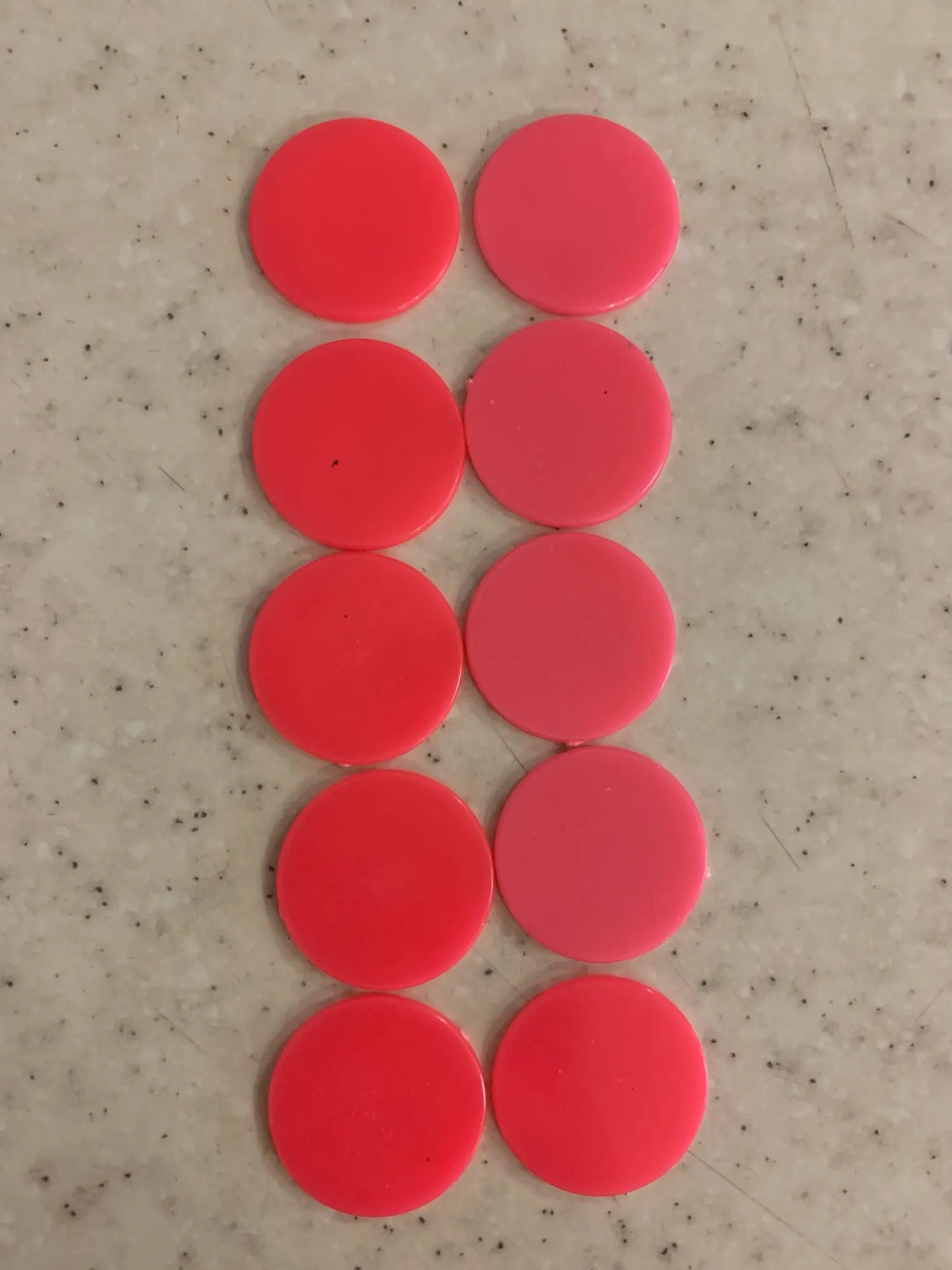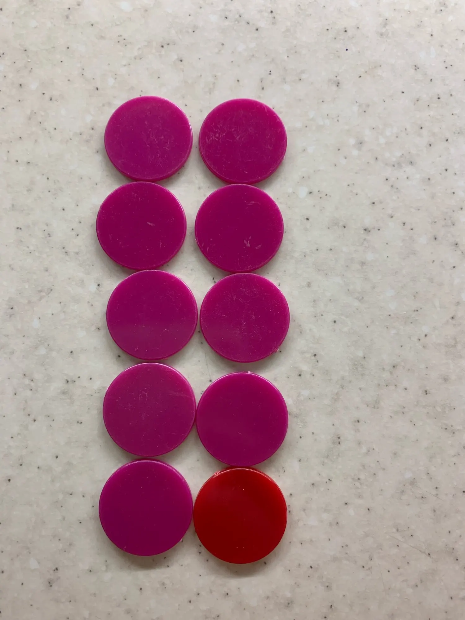 Recu assez rapidement bien emballé. Agreablement Surprise de recevoir 10 jetons de 10 couleurs differentes au lieu de 9 prevue. Merci