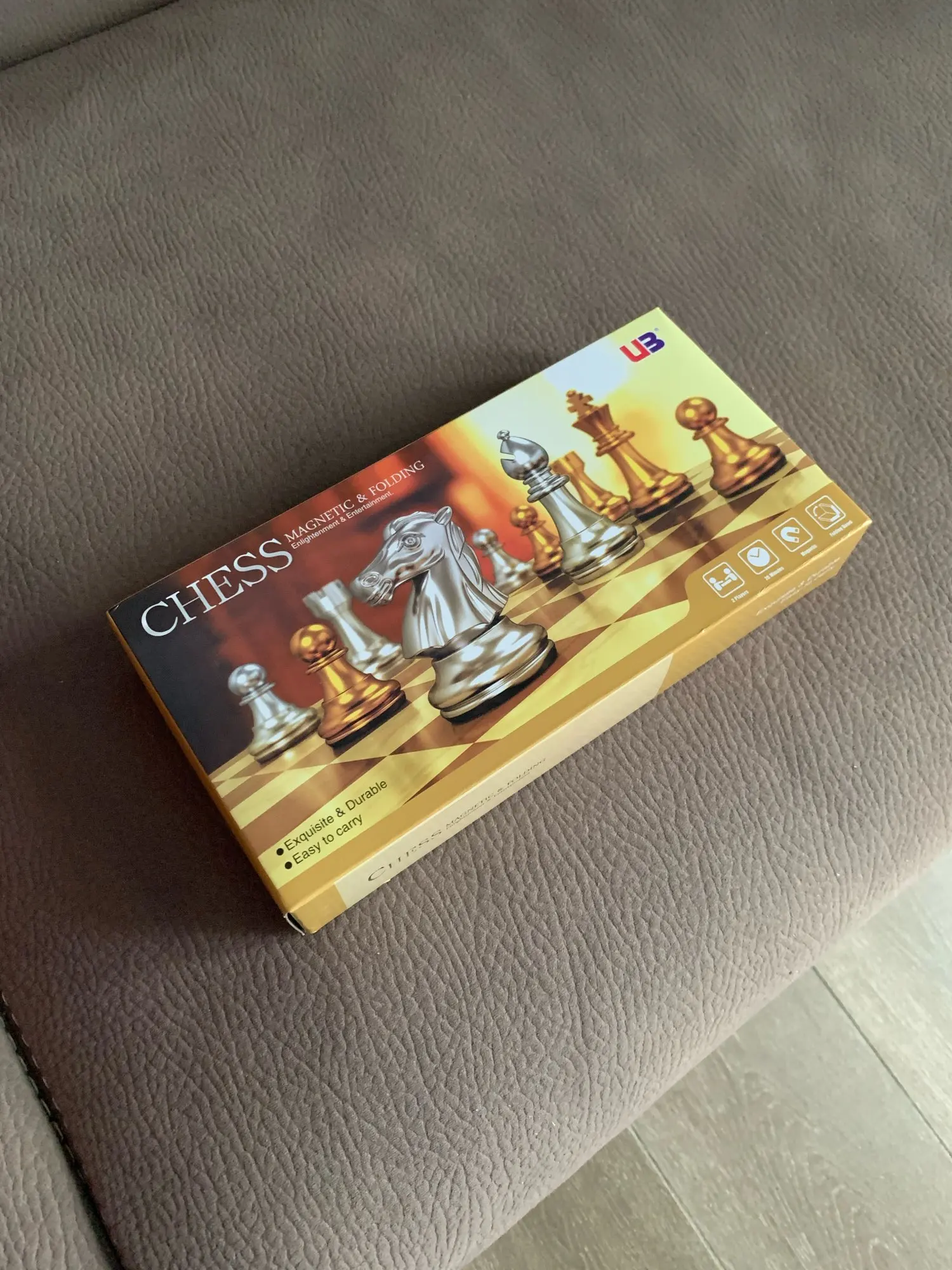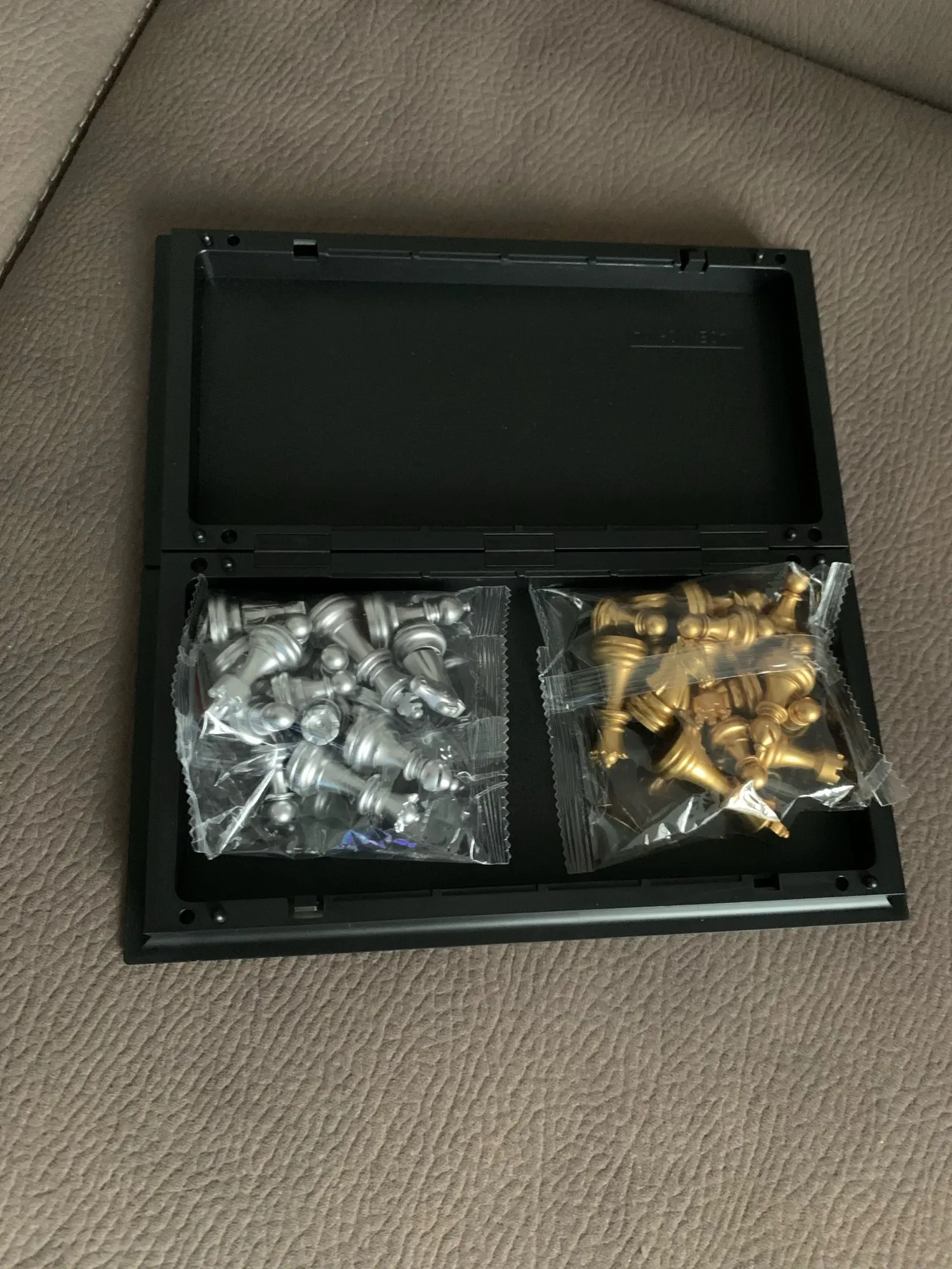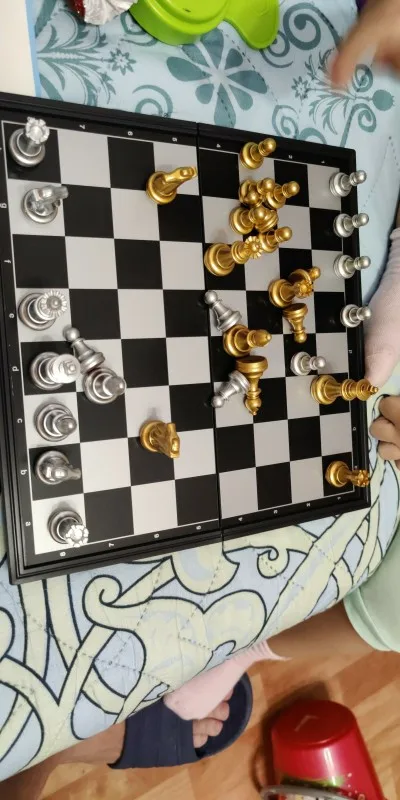 Jeu d'échecs de voyage magnétique pliant pour enfants ou adultes jeu d'échecs 25x25 cm (pièces d'échecs en Or et argent)