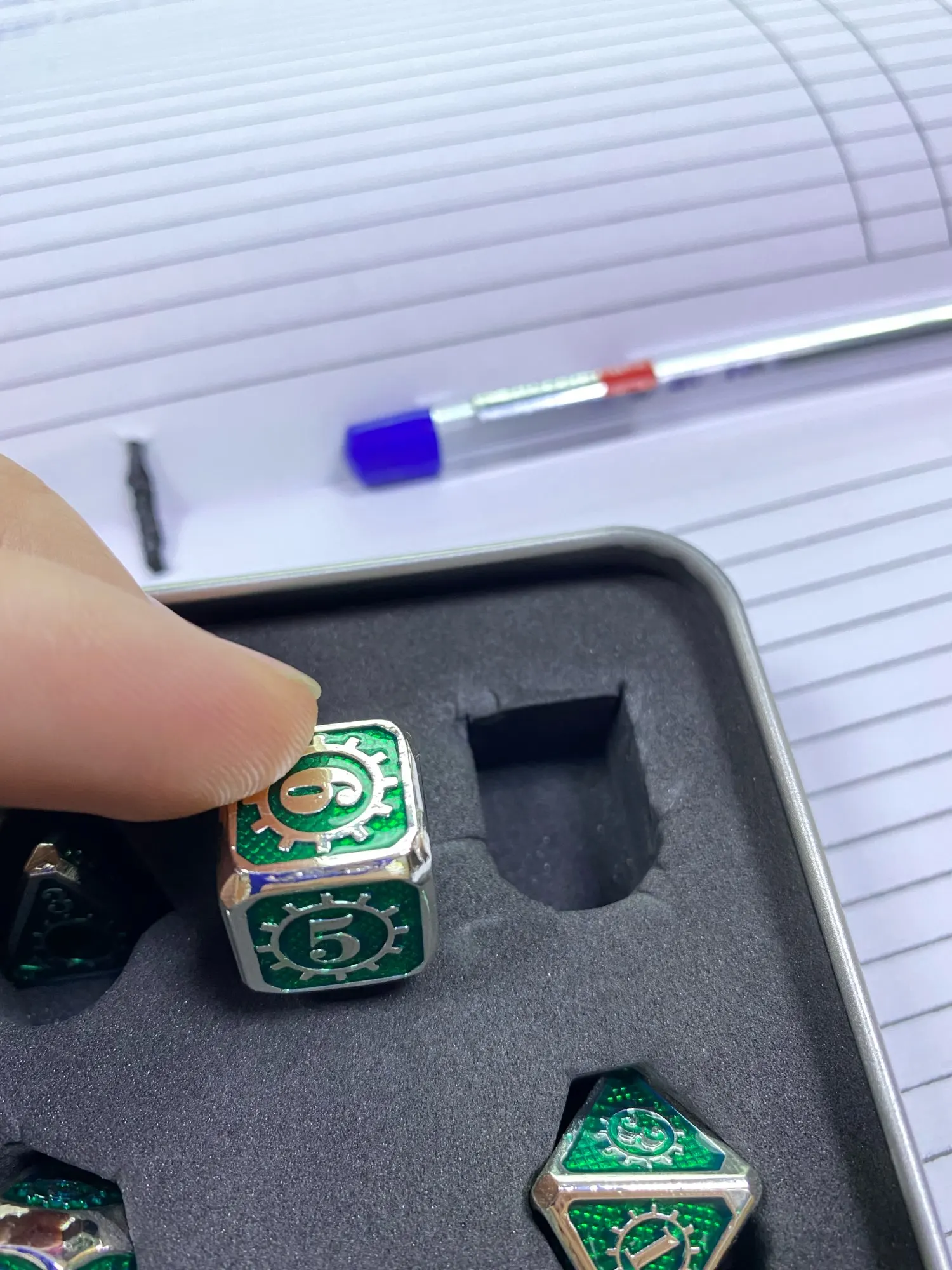 Les dés sont très beaux (la couleur et la forme) mais ils sont plus petits que ce qui est montré sur les photos...