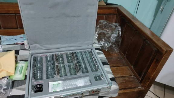 Jeu de lentilles de tests d'optométrie, étui en Aluminium à bord métallique, 158