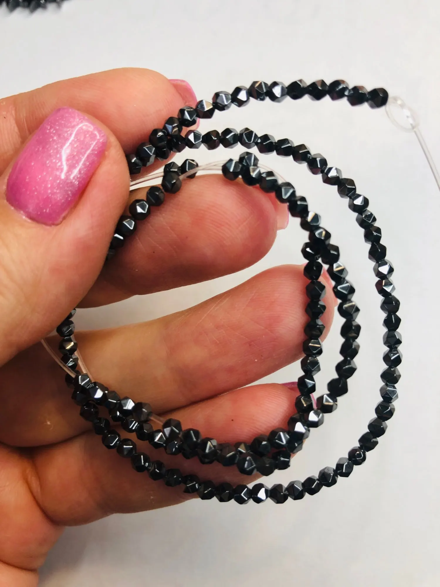 JHNBY-perles à facettes rondes en hématite noire, 2/3/4/6/8mm, pierre naturelle, espaceur, pour la fabrication de bijoux, 15.5 pouce collier à faire soi-même