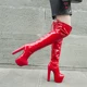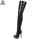 Jialuowei – bottes hautes en PVC pour femmes, chaussures érotiques à talons hauts, plateforme au-dessus du genou, fermeture éclair, entrejambe, Sexy, à bout pointu, 2022