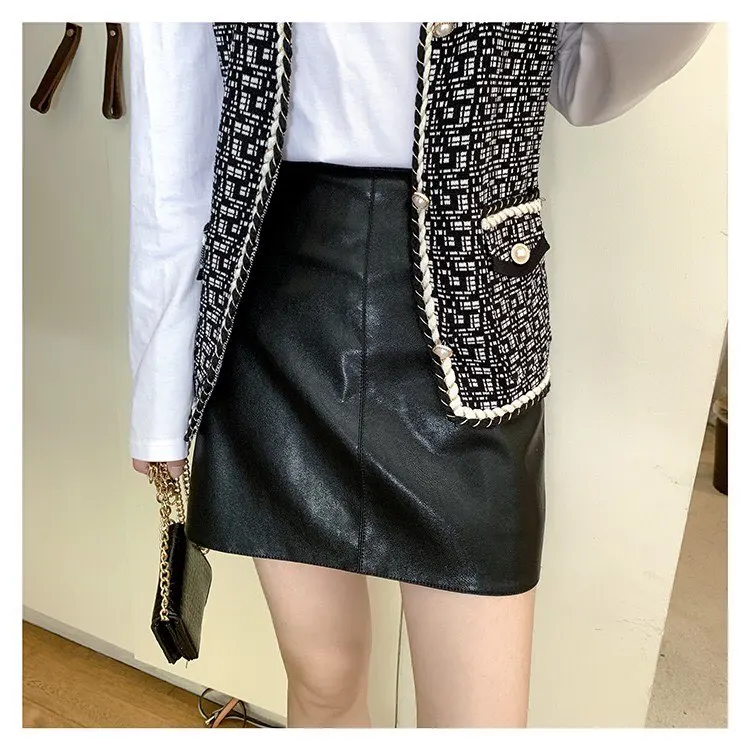Jielur-Mini jupe en cuir taille haute femme, 4 couleurs Chic noir, Sexy, ligne a, PU, automne hiver