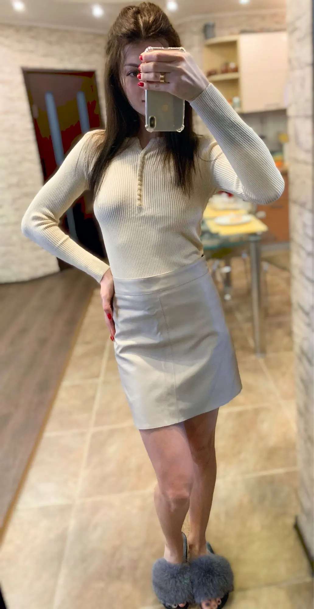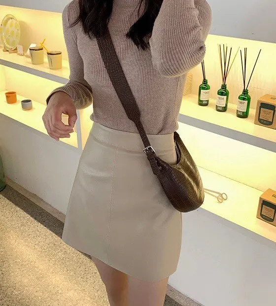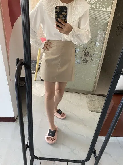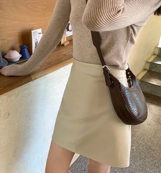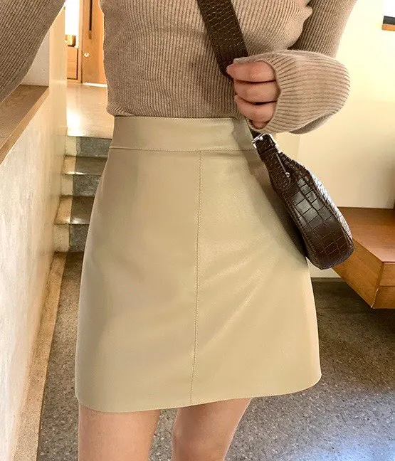 apricot skirt, faldas mujer, leather skirt
