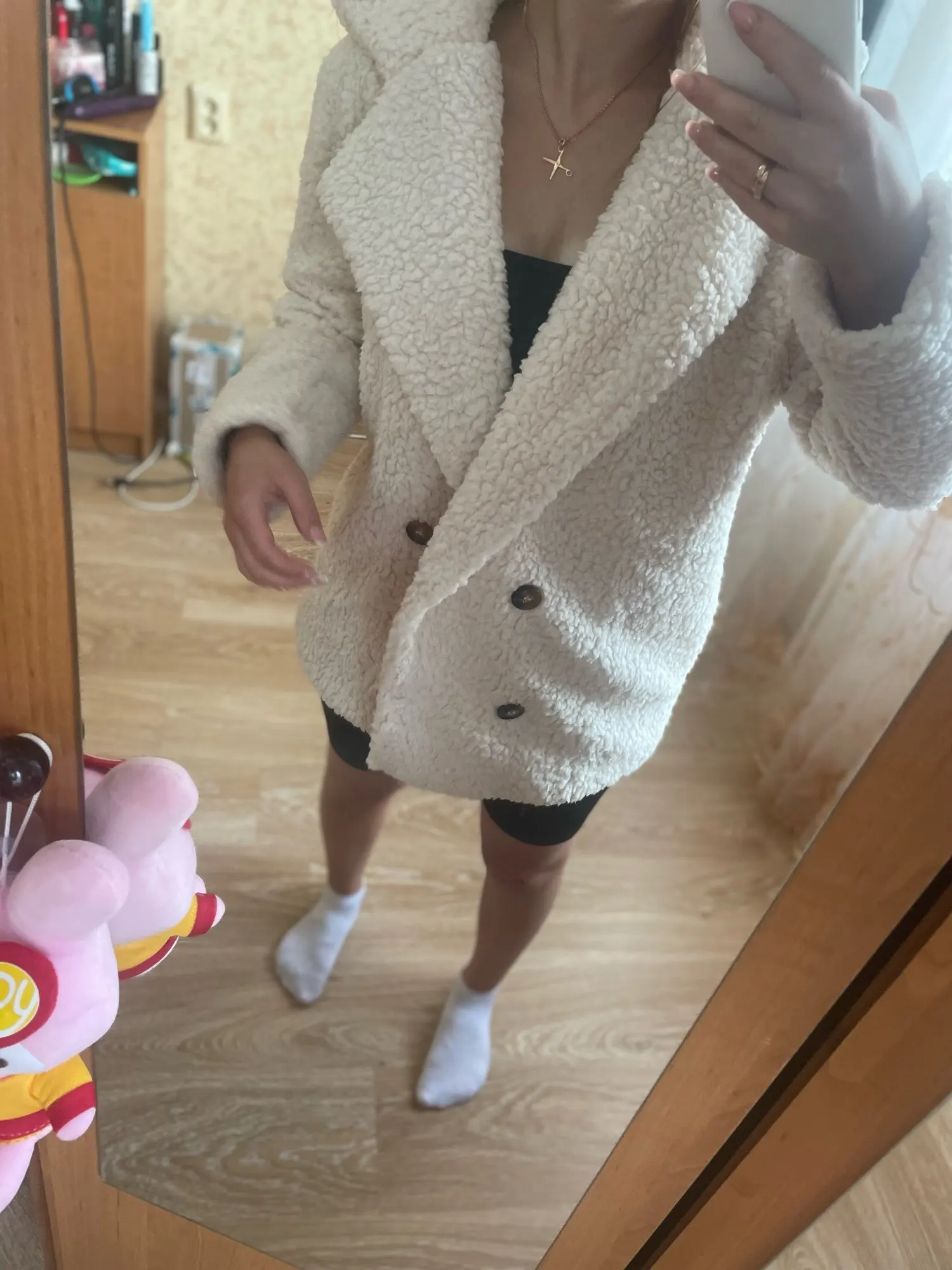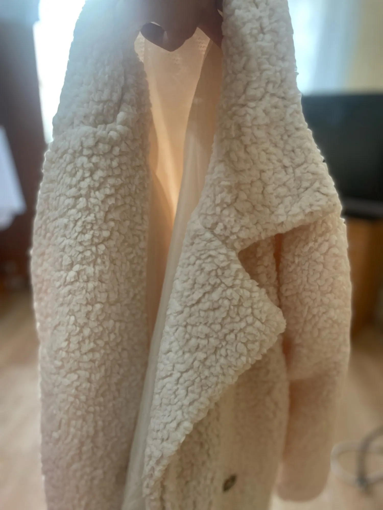 comme décrit parfait un conseil prenez votre taille habituelle ou même une taille en moins car j'ai pris 2xl mais pouvait me servir en xl . Le manteau est doux assez épais tient quand même chaud.