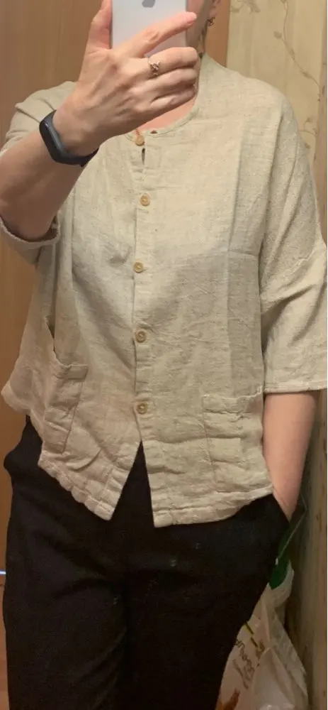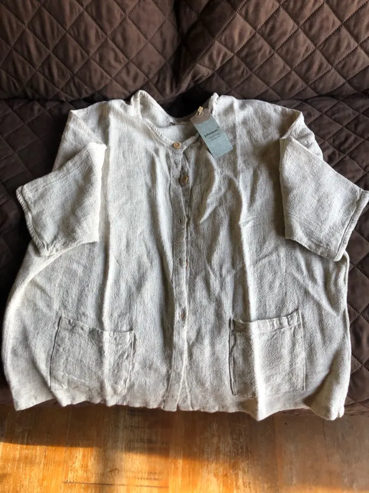 Johnature – col rond ample en coton et lin pour femme, poches à boutons régulières, matière solide, confortable et respirante, nouvelle collection été 2022