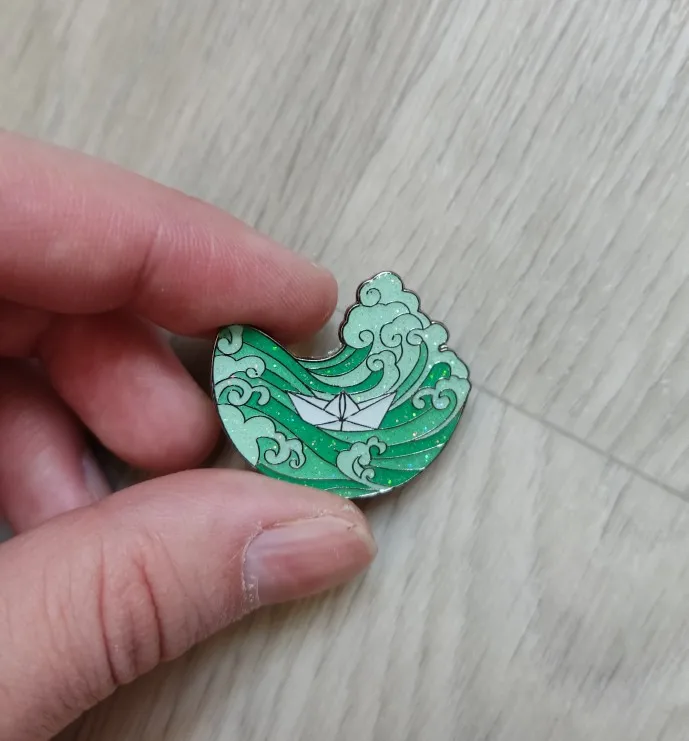 Jolie paillettes énormes vagues dur émail broche drôle dessins animés papier bateau médaille broche mode revers sac à dos épingles bijoux cadeau Unique
