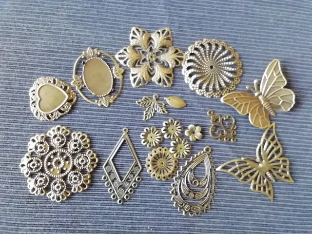 Julie Wang 16 pièces Vintage papillon fleurs breloques connecteur fer Antique Bronze Bracelet bijoux faisant pendentif accessoire